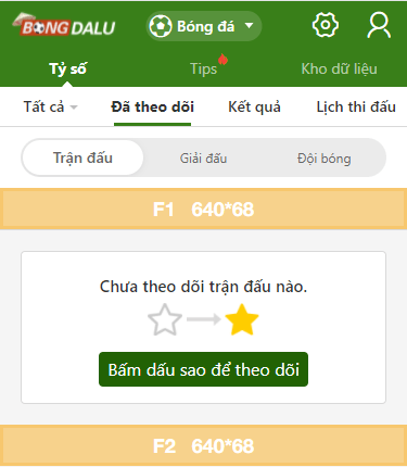 Các vị trí trên trang Theo dõi bóng đá
